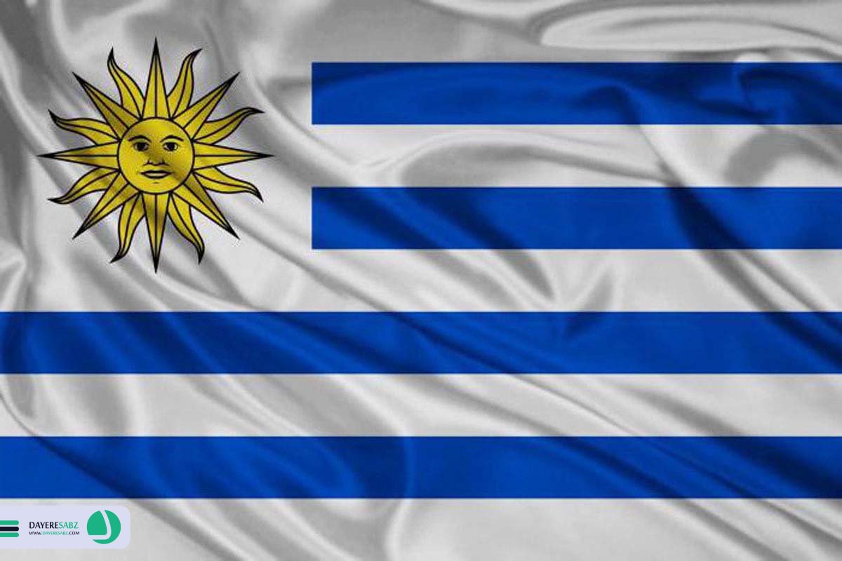 - پرچم اروگوئه: ۹ نوار افقی متناوب (۵ سفید، ۴ آبی) با کانتون سفید شامل خورشید.