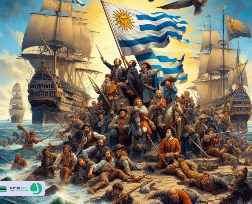 اروپگوئه (که اغلب به عنوان «سوئیس آمریکای جنوبی» شناخته میشود) پس از یک دوره طولانی مبارزه بین قدرتهای منطقهای بزرگتر (برزیل و آرژانتین)، توانست هویت ملی خود را شکل دهد. پرچم، به عنوان بیرق اصلی ملت، باید میراث این مبارزات و ساختار جدید سیاسی را منعکس میکرد.